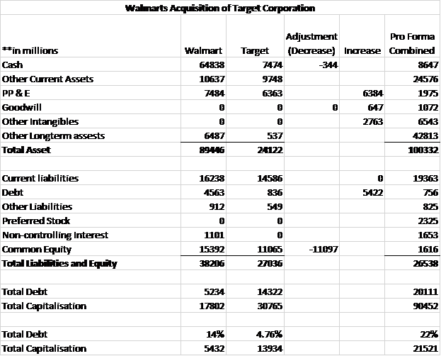 Target Corporation operates in the same industry as Wal-Mart. Target Corporation is an over one hundred-year-old organization with over one thousand eight hundred branches in various cities throughout the United States. Most of the items sold by Target are the same as those offered by Wal-Mart, but Target outperforms Wal-Mart when it relates to fashion-conscious shoppers. Wal-Mart prioritizes volume and low prices, while Target retailers prioritize consistency. After making this acquisition, Wal-Mart would be able to target buyers who are interested in apparel and excellent quality. The firm has extensive retail expertise and is well-versed in the heartbeat of the United States industry. Target’s workforce of over 347,000 workers is the greatest asset. Wal-Mart will benefit greatly from highly skilled management and workforce. Owing to the closure of its Canadian activities, the company suffered a $1.636 billion loss in 2014. The company’s combined assets exceed $41.404 billion. Losses incurred by the company and the closure of its activities in Canada will be used to negotiate the price of the purchase. Walmart’s sales and net assets will also grow as a result of the takeover. The minimum acquisition price for Target is $209 billion dollars which it is currently valued at.
